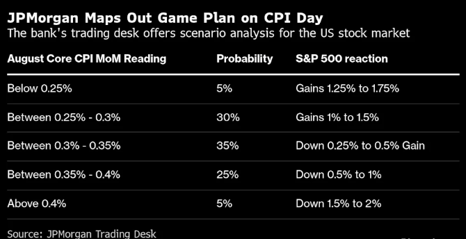 此外,若核心CPI环比涨幅介于0.25%-0.3%,摩根大通交易部门预计标普500指数将上涨1%-1.5%;若涨幅低于0.25%,则可能触发标普500指数1.25%-1.75%的大涨。